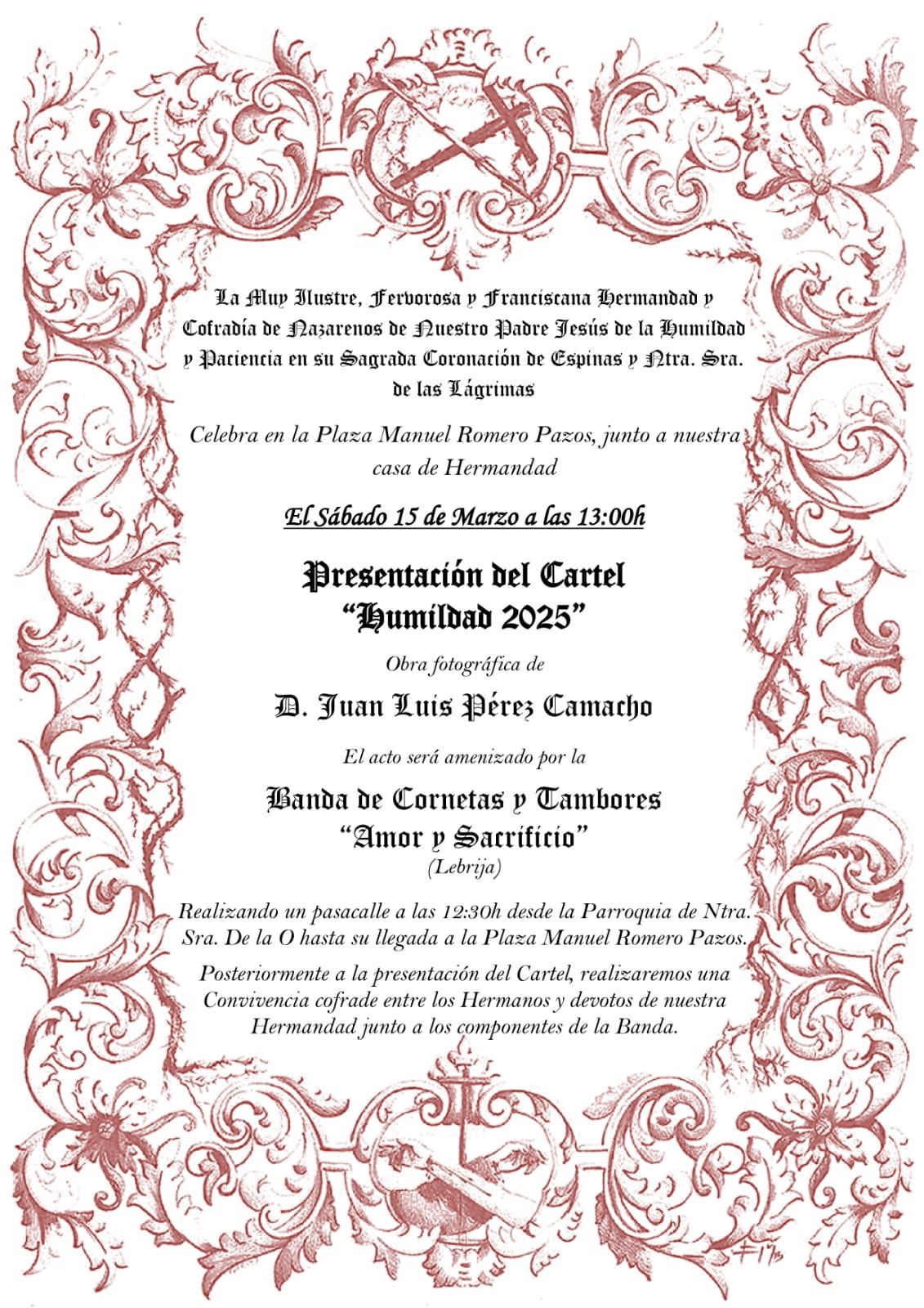 Presentación del cartel «Humildad-2025» en la Hermandad de La Cañita Mar 15 12:30 Presentación del cartel «Humildad-2025» en la Hermandad de La Cañita