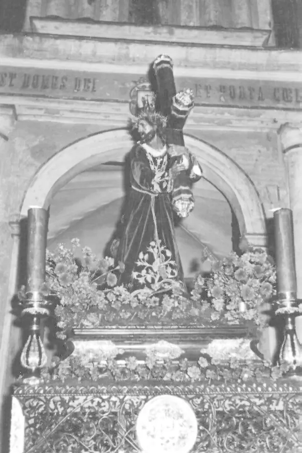 Parece ser, no obstante, que Miguel falleció a finales de 1691, sin haber sido terminada aún la capilla6, por lo que de las obligaciones contraídas seguiría haciéndose cargo su hijo, Francisco, en solitario. Debió de ser éste quien terminó colocando el retablo y una hechura de Jesús Nazareno con la cruz a cuestas —actual del Consuelo— que empezaría a recibir culto como muy tarde en 1700, año en que consta ya como bendecida7.