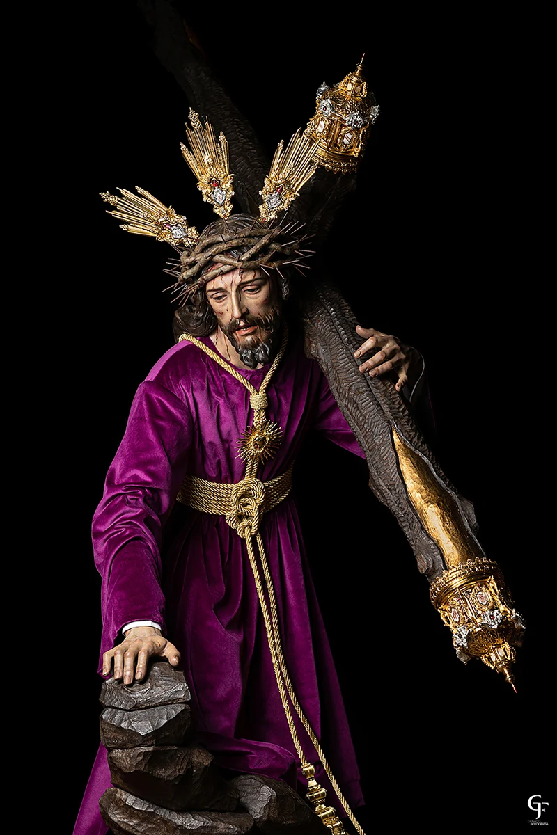 El misterio sanluqueño de la Tercera Caída representa el momento iconográfico de Jesús camino del Calvario cuando cae por tercera vez. El conjunto escultórico está compuesto por ocho figuras incluyendo al Señor, y destaca por su dinamismo y complejidad, evocando las ricas tradiciones de las obras escultóricas, retablísticas y pictóricas, así como grabados de los siglos XVI a XVIII.